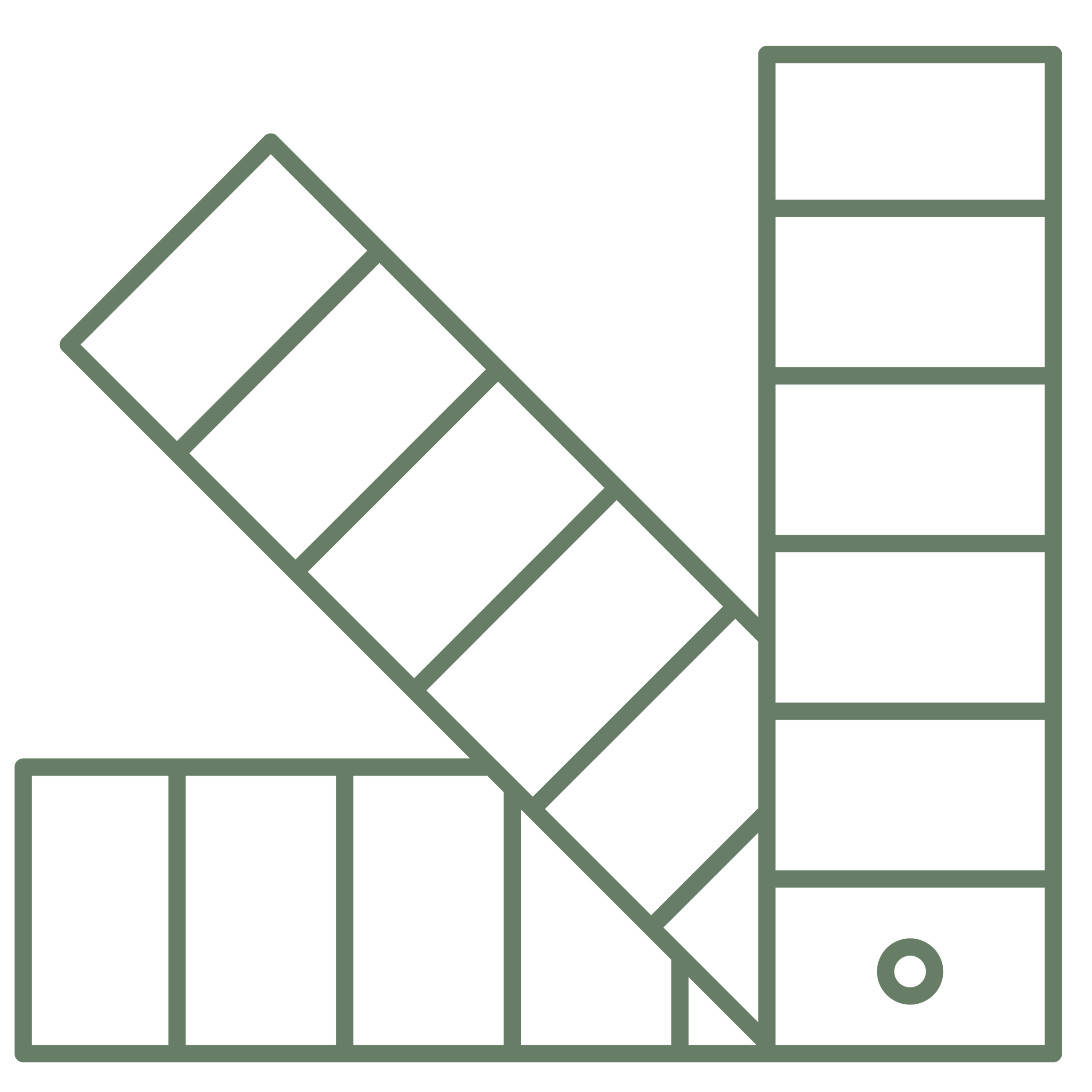 Sélection de palettes et matériaux en cohérence avec l'image de marque et l’ambiance souhaitée, alliant esthétisme, résistance et durabilité avec une approche éco-responsable si désirée.